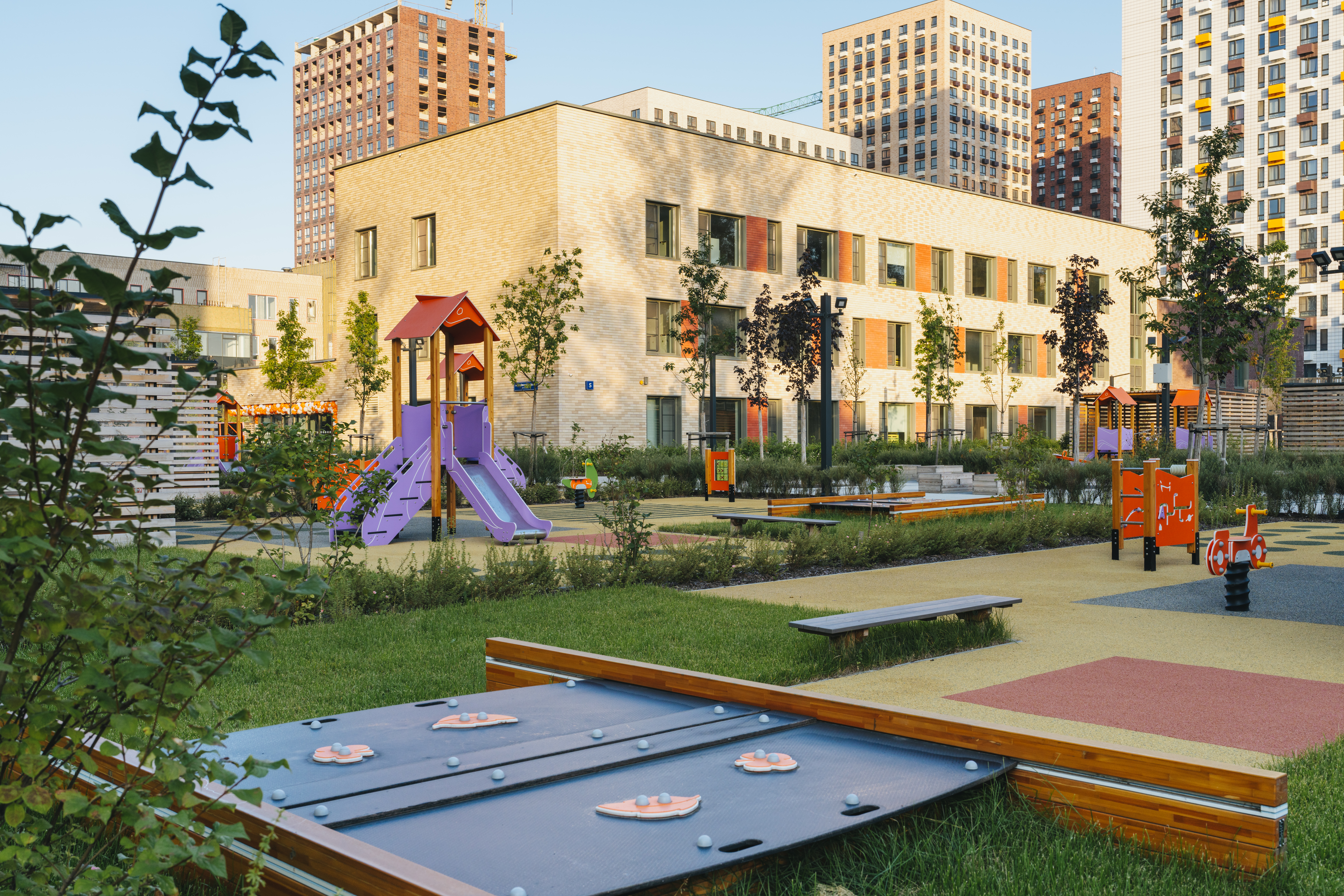Детский сад находится на территории жилого комплекса “Волжский парк” в московском районе Текстильщики и рассчитан на 300 мест. Здание вмещает просторные и светлые помещения для игр, занятий и отдыха малышей. Продуманные проектировщиками до мелочей детские площадки на территории садика не дадут ребятам скучать во время прогулок в любую погоду.